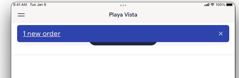 It doesn’t matter what you are currently viewing on the tablet, if a new order comes it, the tablet will let you know a new order has been placed. Tap on the “1 new order” button.