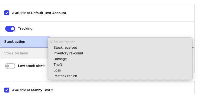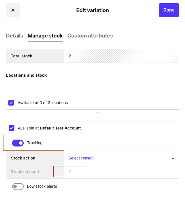 - In your Square Dashboard, disable the Tracking toggle for all items you want to manually manage.