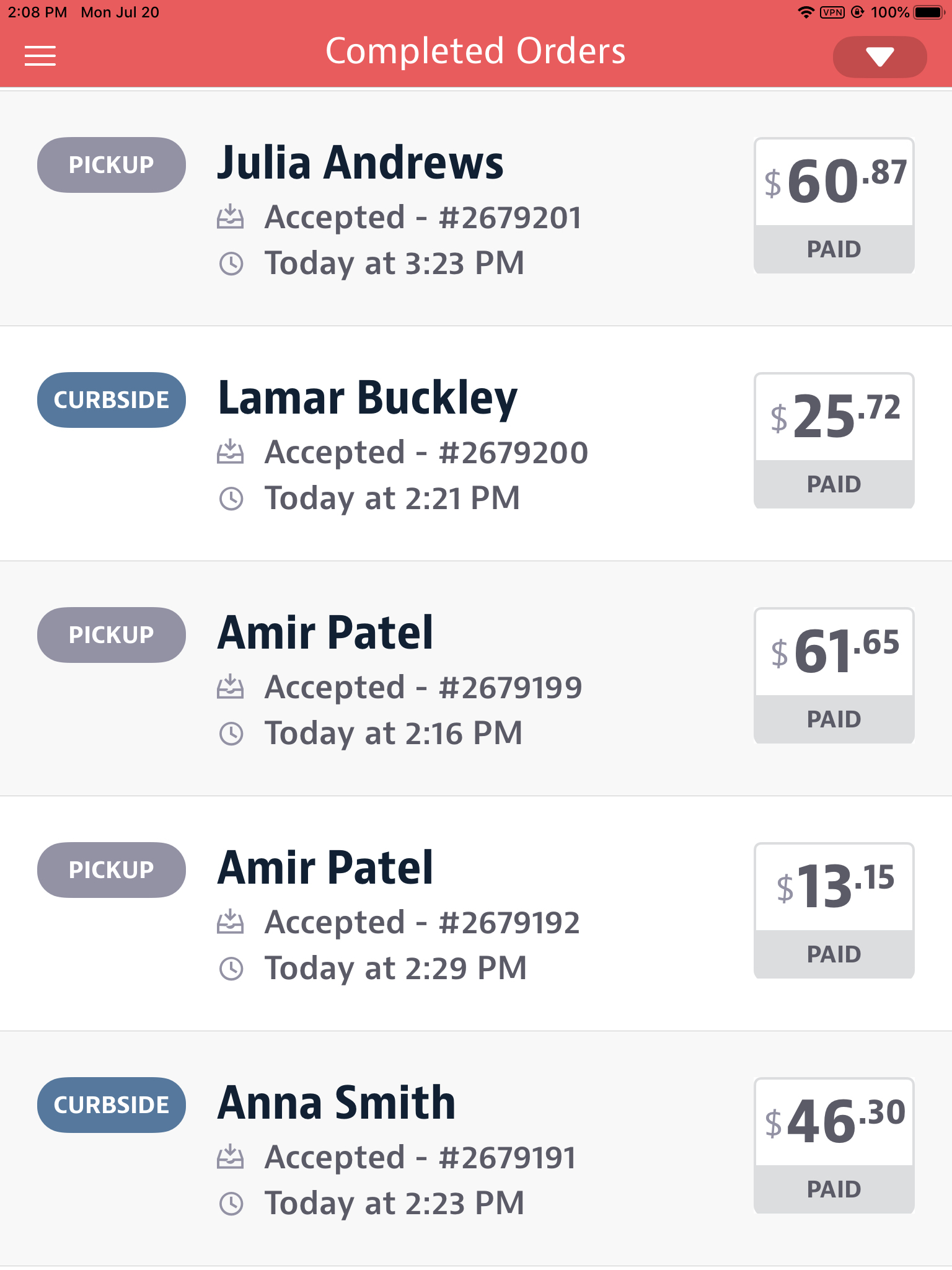 - On your Tablet’s order list you’ll be able to easily parse through different order types.