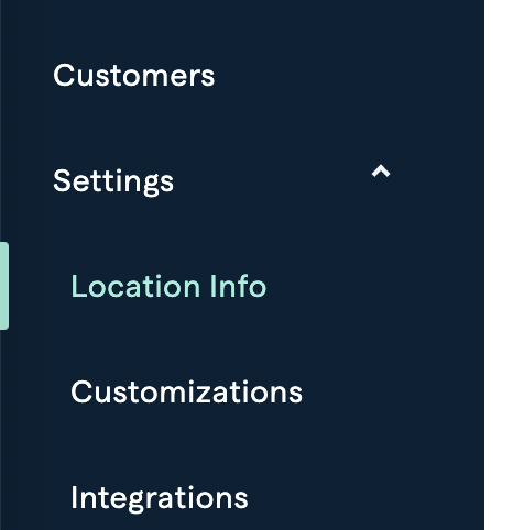 4) Once you are in the correct location, use the left sidebar to click the “Settings”, and then click “Location Info.”
