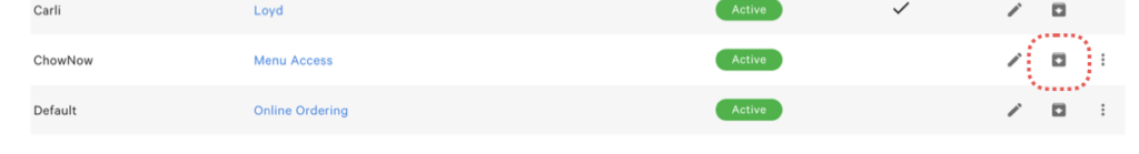 1. Click the “Pencil” icon next the the “ChowNow Menu Access” line