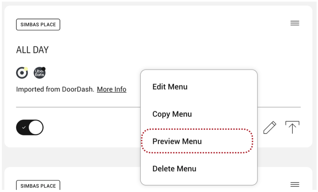 Before your menu is published, view a preview to see how your menu will show up for customers.