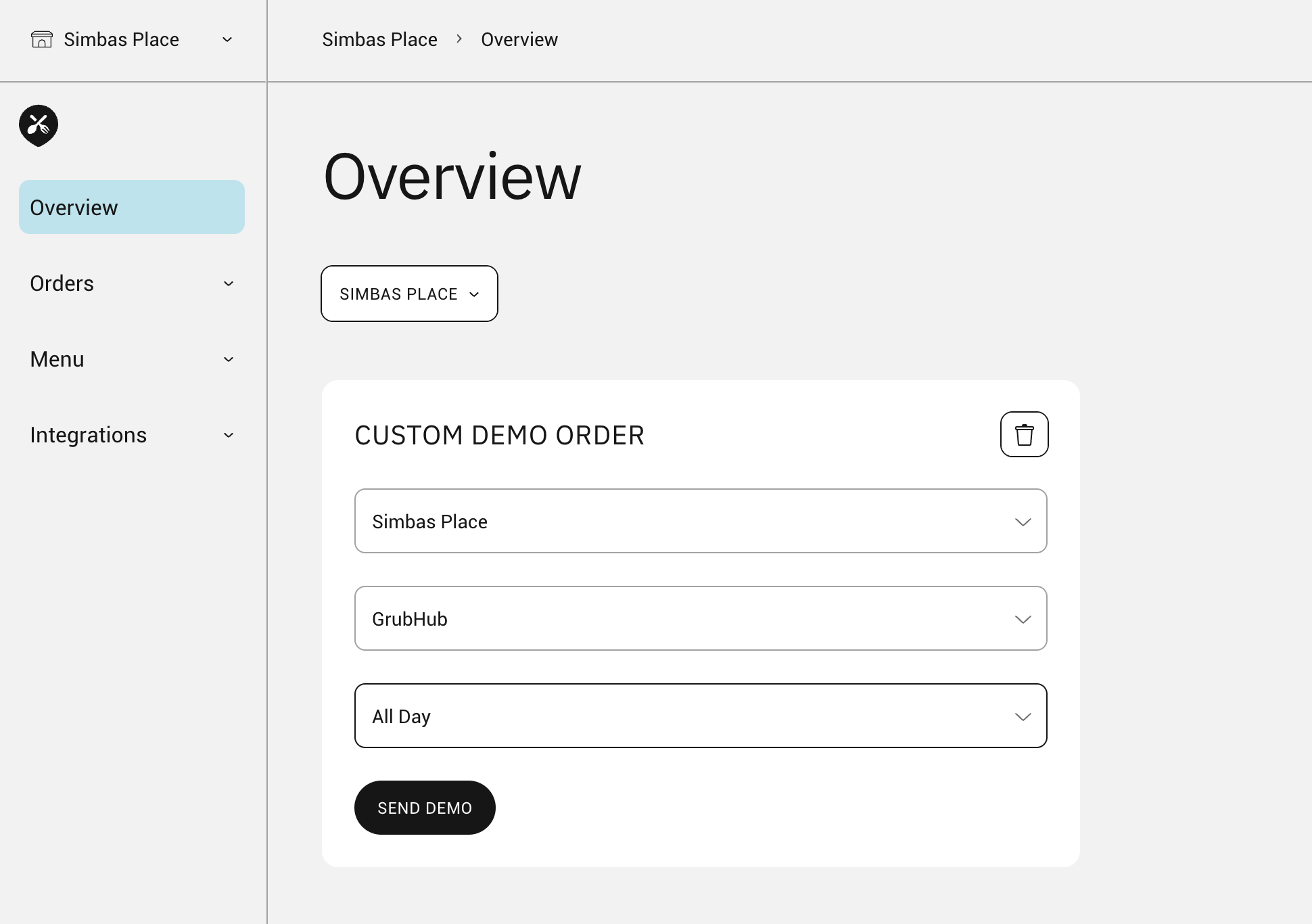 On the Dashboard Home and Overview pages, you can now send custom demo orders to your POS and/or Cuboh tablet. The demo order will use 2 random items from your menu.