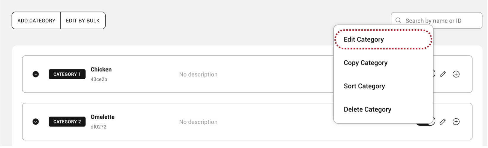 - Click on the edit icon to the right of your category name and select Edit Category.