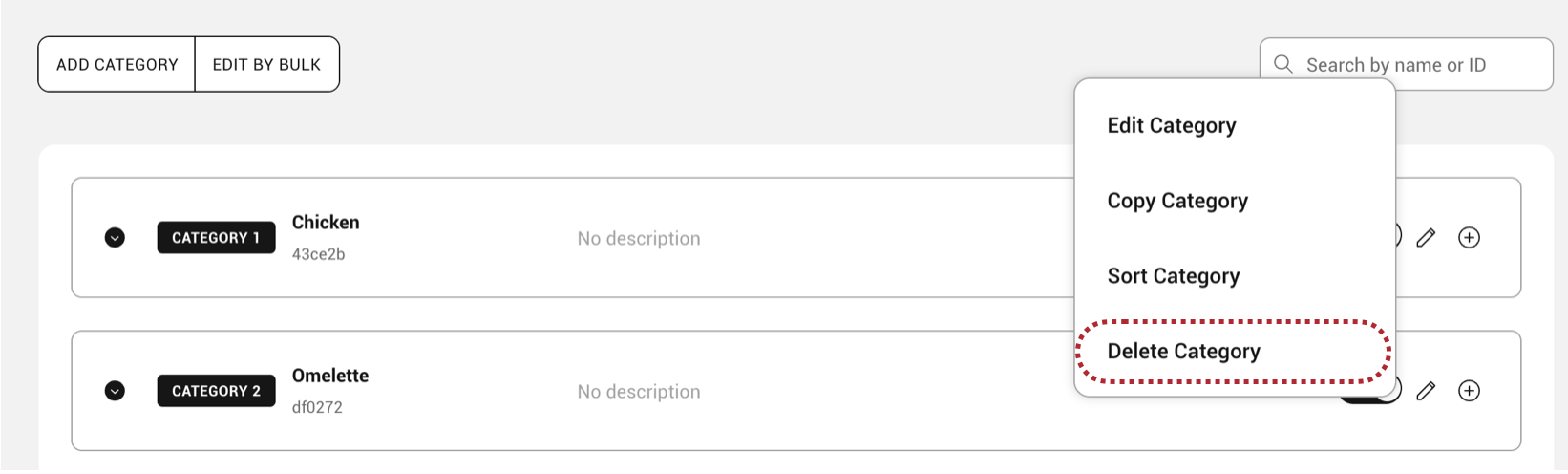 Deleting a menu category