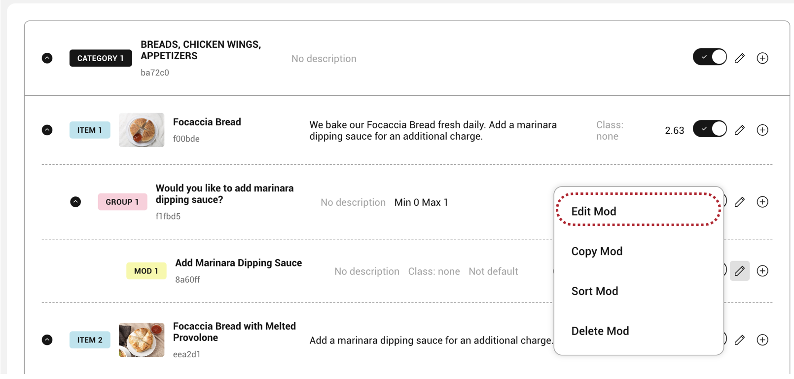 - Click on the edit icon to the right of your modifier name and select Edit Mod.
