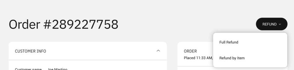- Click the “Refund” button, then select the type of refund you would like to issue.