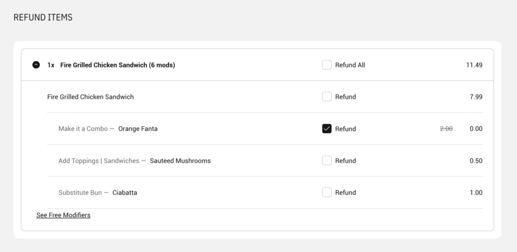 - Click the checkbox next to each line item you would like to refund.