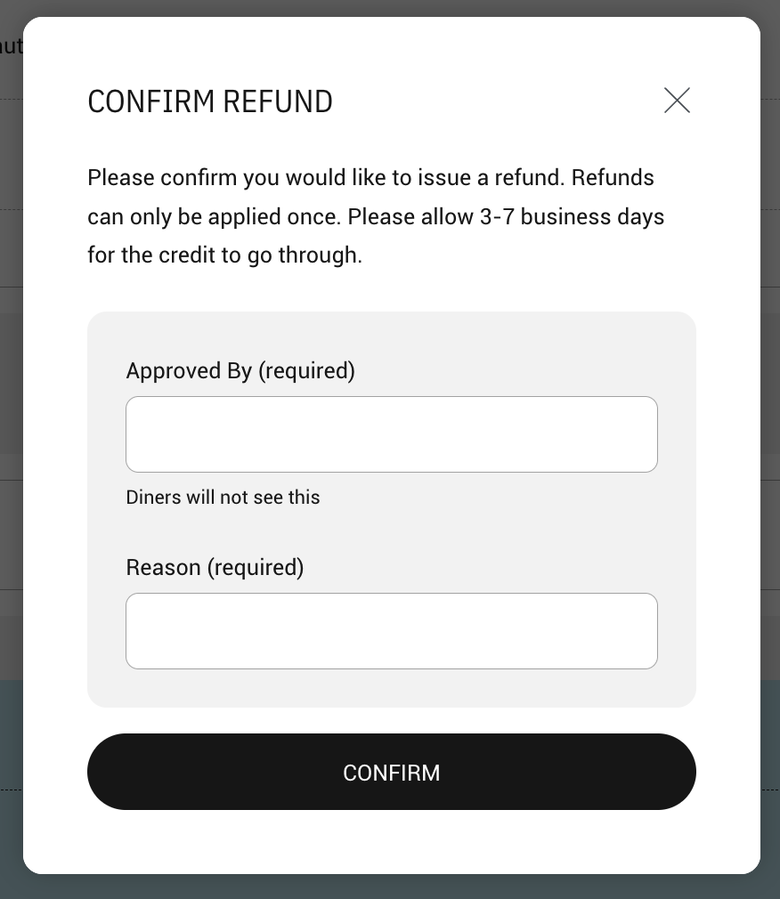 - After adding your name and reason for refund, click “Confirm”
