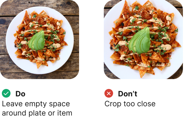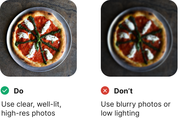 • Stick to one photo per menu item, not collages.