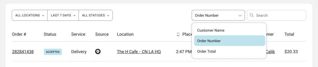- You can also search for a specific order.